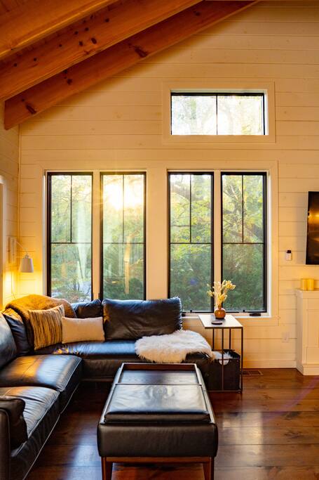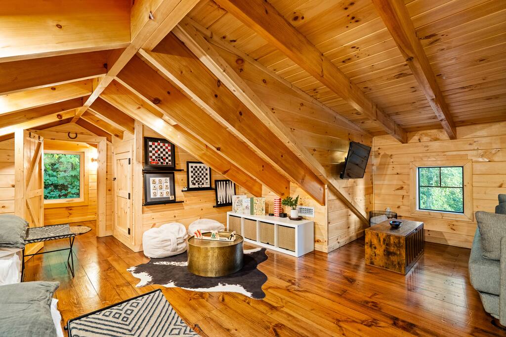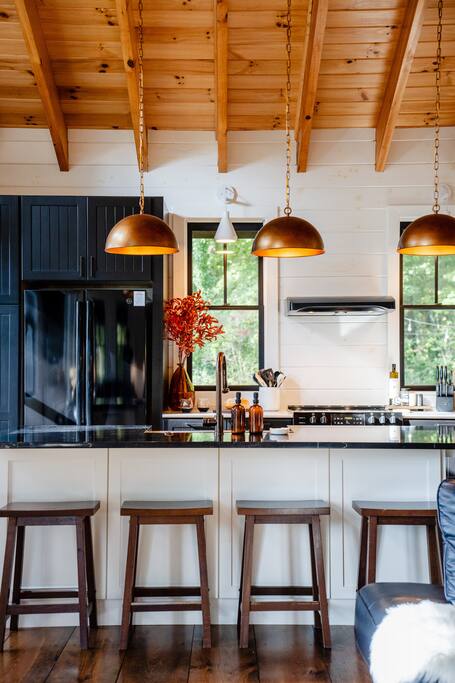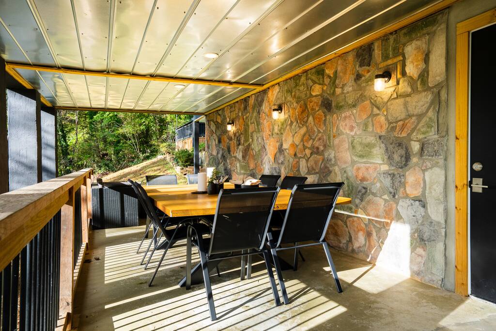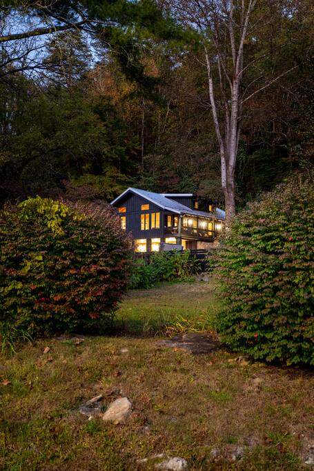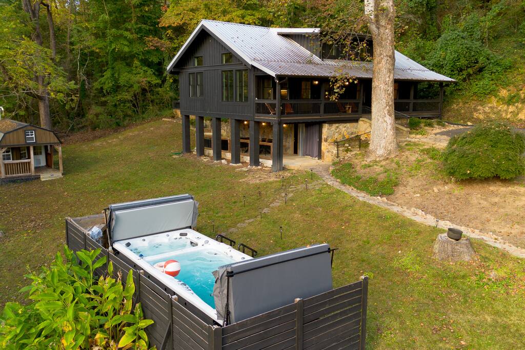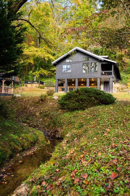 KEY FEATURES 1. Gorgeous design, durable for kids and pets, loaded w/ family games 2. Walk to shopping, dining, bars and breweries 3. Huge yard with creek, mountain view, backs up to private forest 4. Extra-large SwimSpa with pool and hot tub combo for 10 (see pictures) 5. Outdoor fire pit with 2 gazebos + estate-like driveway 6. Large deck w/ mountain view, fire bowl, café lights, sofa for 12, dining area 7. Three bedrooms; 2 kings, 1 queen, 3 twins or another king (we'll show you how to arrange twins in to a king if you'd like) 8. Four twin slumber spots on 2 luxury leather sectionals – sleeps 10 total 9. Indoor fireplace and 65” Smart TV, high speed wifi 10. Loaded for kids with high-chair, crib, stroller, toys 11. Fully stocked kitchen, full-size w&d 12. Magical outdoor lighting, outdoor ping-pong table 13. Personal touch of private owners FROM OUR REVIEWS What my "vacation rental" home dreams are made of. Even more beautiful than the pictures. Every single detail has been carefully thought of. Decor looked like it was straight out of a magazine. Glamorous yet comfortable. The grounds are right out of a fairytale. Large sofas and beds were extremely comfortable. Felt like an individual oasis. Plenty of space for our family to spread out. So close to downtown Clayton with shops and restaurants, but also private with the extra outdoor deck space and fire pits. Property was so fun for our kids to run around in. They played in the meandering creek and picked daffodils. Wonderful, responsive hosts! House is everything that is pictured to be and so much more! STYLISH YET DURABLE Situated on 2.5 + gorgeous acres with huge yard and a creek to keep the kids busy while the adults unwind. Parents can relax, with endless outdoor space, durable furnishings, & uncluttered design this space is ULTRA kid & pet friendly. GREAT FOR GROUPS Easy to walk downtown while the rest of the group hangs back at the lodge. Plenty of room to spread out or be close together. WALKABLE Located less than ½ mile from downtown Clayton. Put the kids in a wagon (provided) and head to town! Downtown is adding new places all the time. Newcomers include Rabun Social Sushi and Tapas and Napa Wine Bar. Stroll to town on paved sidewalks after crossing one street across from City Hall and the *Farmer's Market (*when in season). STAY A WHILE You could spend DAYS on this gorgeous property nestled at the base of Black Rock Mountain. Connect with nature, family and friends and enjoy the huge yard, hot tub/pool, creek, expansive decks and still have DAYS to explore the local area. CONSISTENLY AMAZING All our homes are part of our small family business, and nothing makes us happier than making you really, really happy! More than 20 years’ hospitality experience has allowed up to fine tune our process so that we can deliver our guests amazing stays time, and time again. SPACES DETAILS BEDROOMS & BATH Three guest suites and additional sleeping space for 4 in the great room guarantees your group restful nights. Each sleeping area has fans, additional blankets, and other creature comforts. BEDROOM #1 - Main Level Sink into the lavish king-size bed and drift off into peaceful slumber. The private en-suite comes complete with dual vanities and gorgeous oversized walk-in shower. Full size washer and dryer in laundry closet off the master. BEDROOM #2- Main Level Equally cozy and beautiful second guest suite also features a king-size bed and en-suite bathroom with dual vanities and a tub/shower combo. BEDROOM #3 - Upper Level Head upstairs to find a loft style bedroom. Three twin beds make an ideal spot for kids to have sleepovers, or they can be converted into a king-size bed and one twin to sleep a couple or family. *We will leave details on how you can convert twins to a king bed. Also upstairs is a queen-size luxury sofa sleeper sofa brings sleeping spaces up to 5 guests. “The Shift Sleeper Sofa by Burrow is made up of two mattresses stacked on top of each other, which makes sitting — and sleeping incredibly comfortable. (CNN)” There’s also a TV with a game console, just in case the kids forget to bring their own. This bedroom has access to a half bathroom with a toilet and sink. * This space has a classic pitched ceiling. Ducking will be required for taller guests.* GREAT ROOM - Main Level With the flip of a cushion, two luxury leather sectional couches on the first floor convert to twin sleeping areas, providing ultra-comfy slumber for four more guests. Added luxe memory foam mattress provide ultimate comfort. Two other half baths. One in the main house hallway and another in downstairs basement, perfectly placed for use while spending time outside. KITCHEN & DINING The modern, sleek, open-plan kitchen is every cook’s dream and is extremely well-equipped. Outfitted with all the cookware, utensils and appliances you will need. A large refrigerator and ample pantry space give you enough room to stock up on groceries, and oversized countertops provide plenty of space for meal prep. Stunning kitchen island with seating for 8 brings a casual, communal vibe to mealtimes. Additional traditional table with 2 armchairs and 2 bench stools provides seating for 4 more. LOCATION 1. Located in the North GA Mountains, minutes from outdoor activities and Downtown Clayton 2. Easy access to Atlanta, Athens, Helen, Greenville SC, Asheville & Highlands, NC 3. Recreation: Tallulah Gorge, Chattooga River, Black Rock Mountain State Park, 3 major lakes to include Lake Burton 4. Enjoy hiking, waterfalls, lakes, shopping & dining, wineries, art and antiques, local art & farmers' markets, boating, fishing, white-water rafting, tubing, mountain coaster, gem mining, zip lining, horseback riding, wedding venues...the list goes on and on …