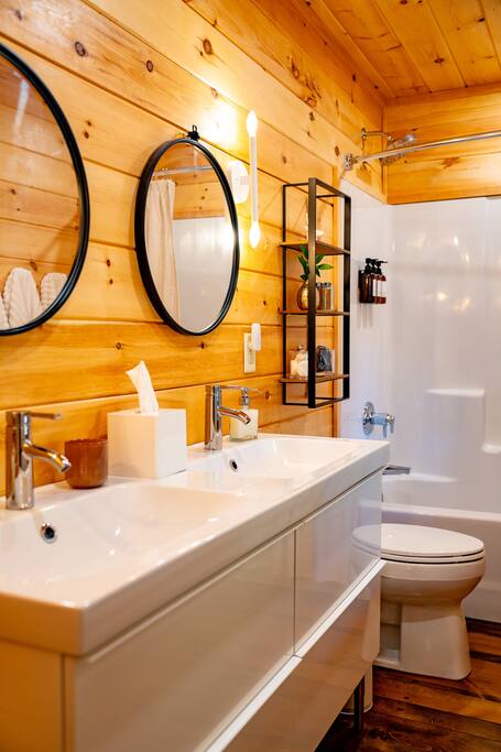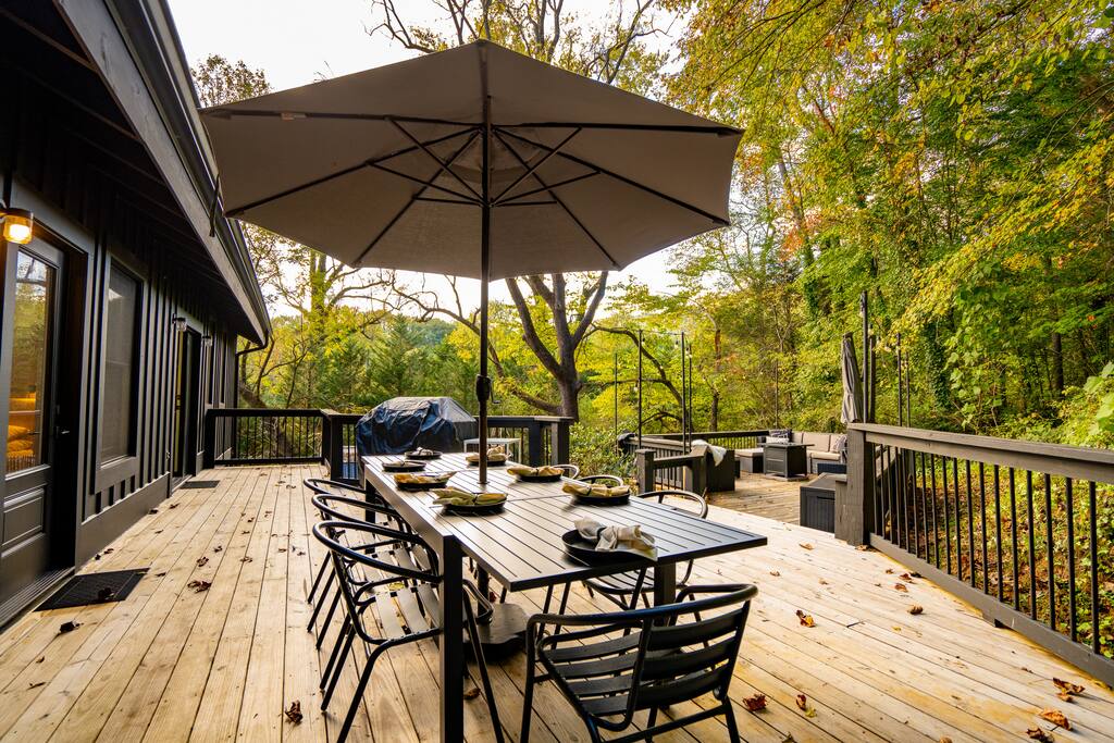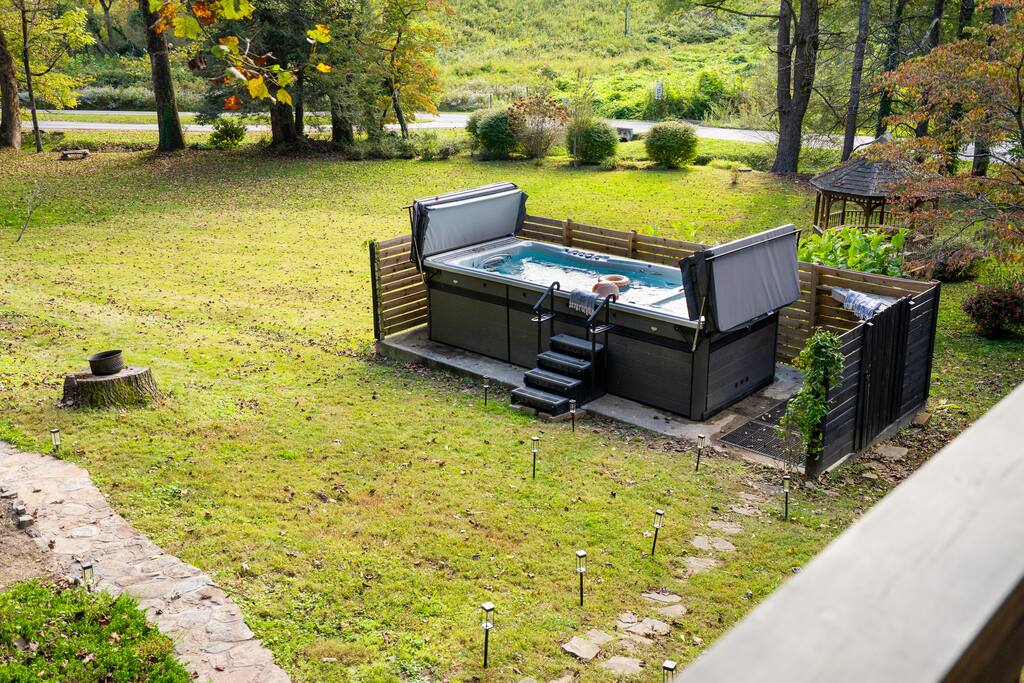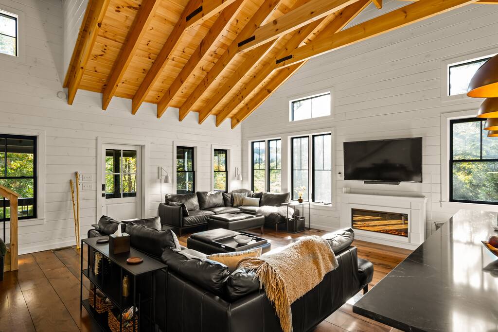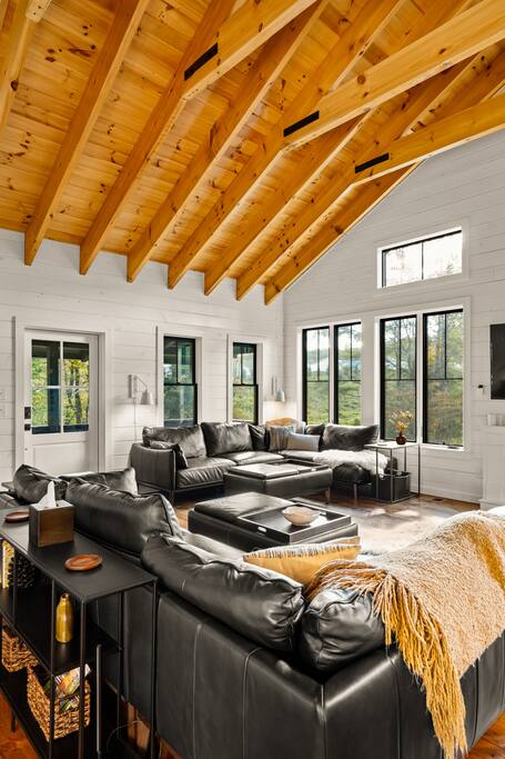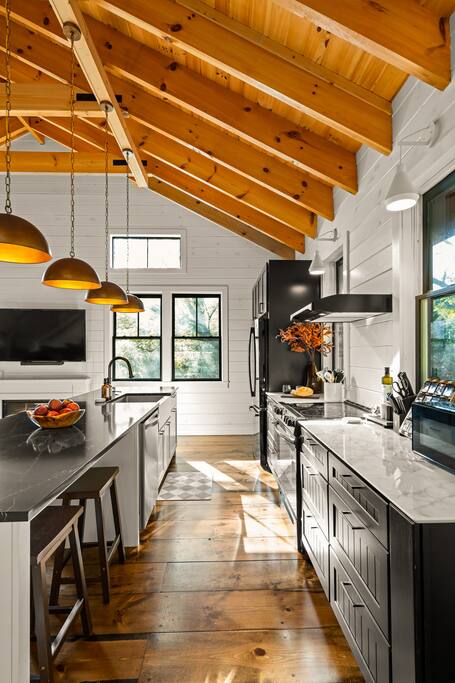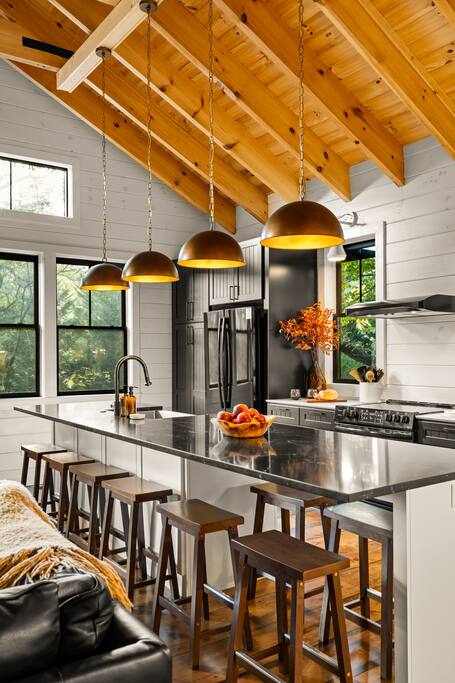 KEY FEATURES 1. Gorgeous design, durable for kids and pets, loaded w/ family games 2. Walk to shopping, dining, bars and breweries 3. Huge yard with creek, mountain view, backs up to private forest 4. Extra-large SwimSpa with pool and hot tub combo for 10 (see pictures) 5. Outdoor fire pit with 2 gazebos + estate-like driveway 6. Large deck w/ mountain view, fire bowl, café lights, sofa for 12, dining area 7. Three bedrooms; 2 kings, 1 queen, 3 twins or another king (we'll show you how to arrange twins in to a king if you'd like) 8. Four twin slumber spots on 2 luxury leather sectionals – sleeps 10 total 9. Indoor fireplace and 65” Smart TV, high speed wifi 10. Loaded for kids with high-chair, crib, stroller, toys 11. Fully stocked kitchen, full-size w&d 12. Magical outdoor lighting, outdoor ping-pong table 13. Personal touch of private owners FROM OUR REVIEWS What my "vacation rental" home dreams are made of. Even more beautiful than the pictures. Every single detail has been carefully thought of. Decor looked like it was straight out of a magazine. Glamorous yet comfortable. The grounds are right out of a fairytale. Large sofas and beds were extremely comfortable. Felt like an individual oasis. Plenty of space for our family to spread out. So close to downtown Clayton with shops and restaurants, but also private with the extra outdoor deck space and fire pits. Property was so fun for our kids to run around in. They played in the meandering creek and picked daffodils. Wonderful, responsive hosts! House is everything that is pictured to be and so much more! STYLISH YET DURABLE Situated on 2.5 + gorgeous acres with huge yard and a creek to keep the kids busy while the adults unwind. Parents can relax, with endless outdoor space, durable furnishings, & uncluttered design this space is ULTRA kid & pet friendly. GREAT FOR GROUPS Easy to walk downtown while the rest of the group hangs back at the lodge. Plenty of room to spread out or be close together. WALKABLE Located less than ½ mile from downtown Clayton. Put the kids in a wagon (provided) and head to town! Downtown is adding new places all the time. Newcomers include Rabun Social Sushi and Tapas and Napa Wine Bar. Stroll to town on paved sidewalks after crossing one street across from City Hall and the *Farmer's Market (*when in season). STAY A WHILE You could spend DAYS on this gorgeous property nestled at the base of Black Rock Mountain. Connect with nature, family and friends and enjoy the huge yard, hot tub/pool, creek, expansive decks and still have DAYS to explore the local area. CONSISTENLY AMAZING All our homes are part of our small family business, and nothing makes us happier than making you really, really happy! More than 20 years’ hospitality experience has allowed up to fine tune our process so that we can deliver our guests amazing stays time, and time again. SPACES DETAILS BEDROOMS & BATH Three guest suites and additional sleeping space for 4 in the great room guarantees your group restful nights. Each sleeping area has fans, additional blankets, and other creature comforts. BEDROOM #1 - Main Level Sink into the lavish king-size bed and drift off into peaceful slumber. The private en-suite comes complete with dual vanities and gorgeous oversized walk-in shower. Full size washer and dryer in laundry closet off the master. BEDROOM #2- Main Level Equally cozy and beautiful second guest suite also features a king-size bed and en-suite bathroom with dual vanities and a tub/shower combo. BEDROOM #3 - Upper Level Head upstairs to find a loft style bedroom. Three twin beds make an ideal spot for kids to have sleepovers, or they can be converted into a king-size bed and one twin to sleep a couple or family. *We will leave details on how you can convert twins to a king bed. Also upstairs is a queen-size luxury sofa sleeper sofa brings sleeping spaces up to 5 guests. “The Shift Sleeper Sofa by Burrow is made up of two mattresses stacked on top of each other, which makes sitting — and sleeping incredibly comfortable. (CNN)” There’s also a TV with a game console, just in case the kids forget to bring their own. This bedroom has access to a half bathroom with a toilet and sink. * This space has a classic pitched ceiling. Ducking will be required for taller guests.* GREAT ROOM - Main Level With the flip of a cushion, two luxury leather sectional couches on the first floor convert to twin sleeping areas, providing ultra-comfy slumber for four more guests. Added luxe memory foam mattress provide ultimate comfort. Two other half baths. One in the main house hallway and another in downstairs basement, perfectly placed for use while spending time outside. KITCHEN & DINING The modern, sleek, open-plan kitchen is every cook’s dream and is extremely well-equipped. Outfitted with all the cookware, utensils and appliances you will need. A large refrigerator and ample pantry space give you enough room to stock up on groceries, and oversized countertops provide plenty of space for meal prep. Stunning kitchen island with seating for 8 brings a casual, communal vibe to mealtimes. Additional traditional table with 2 armchairs and 2 bench stools provides seating for 4 more. LOCATION 1. Located in the North GA Mountains, minutes from outdoor activities and Downtown Clayton 2. Easy access to Atlanta, Athens, Helen, Greenville SC, Asheville & Highlands, NC 3. Recreation: Tallulah Gorge, Chattooga River, Black Rock Mountain State Park, 3 major lakes to include Lake Burton 4. Enjoy hiking, waterfalls, lakes, shopping & dining, wineries, art and antiques, local art & farmers' markets, boating, fishing, white-water rafting, tubing, mountain coaster, gem mining, zip lining, horseback riding, wedding venues...the list goes on and on …